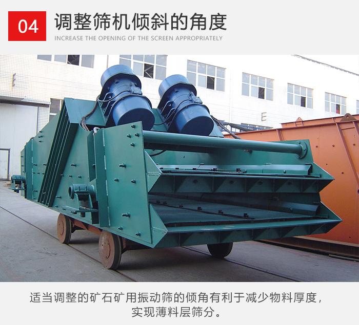 總結(jié):適當(dāng)調(diào)整的礦石礦用振動(dòng)篩的傾角有利于減少物料厚度,實(shí)現(xiàn)薄料層篩分。
